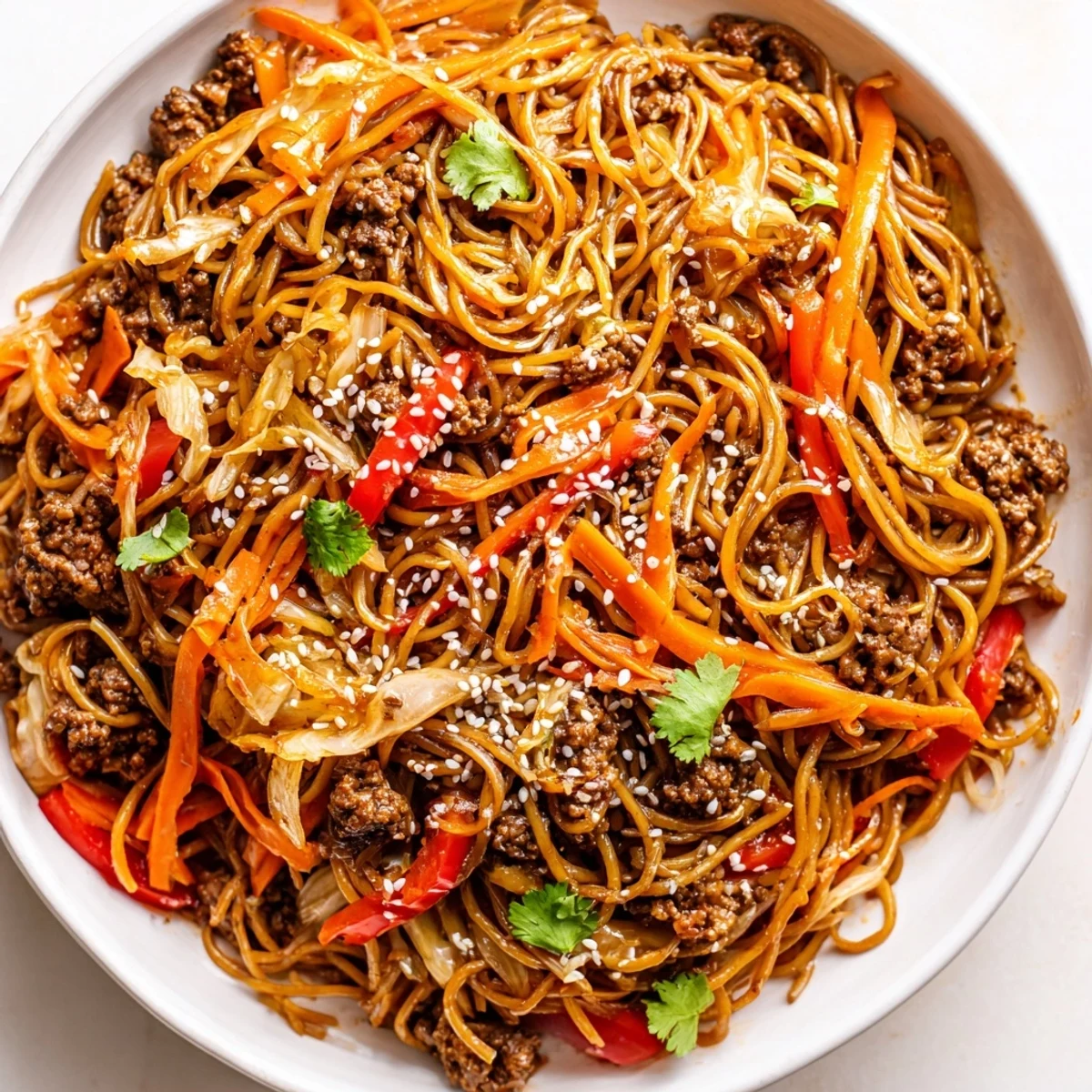 This satisfying noodle dish combines seasoned ground beef with colorful vegetables and a rich, umami-packed sauce. Ready in just 35 minutes, it's perfect for hectic weeknight dinners when you want something hearty and flavorful without spending hours in the kitchen.