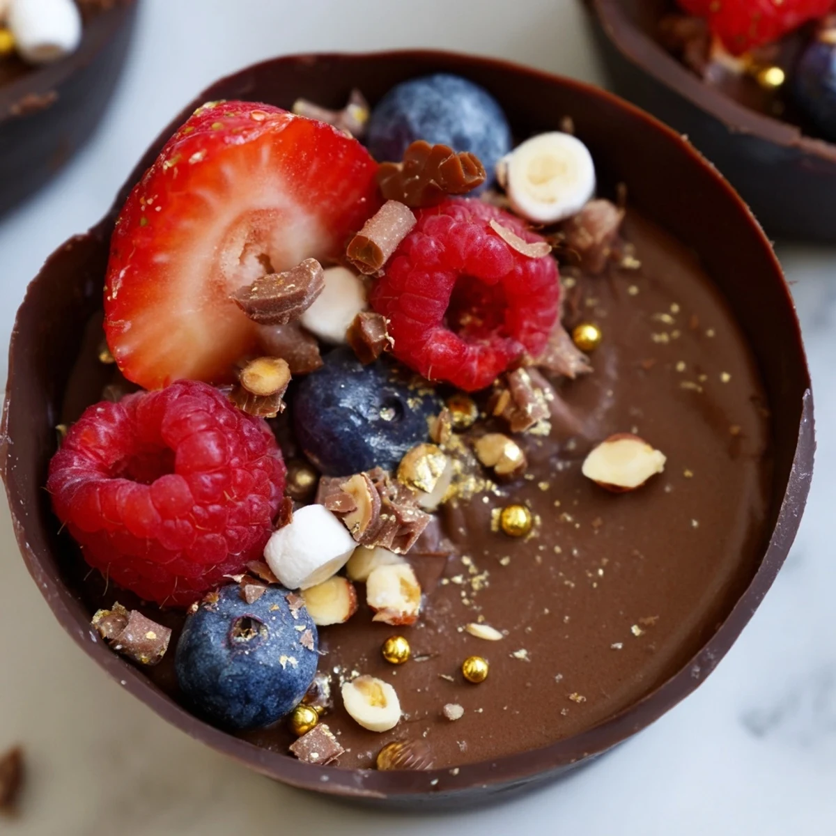 Create stunning chocolate grazing cups with edible bowls filled with silky mousse and topped with fresh berries, nuts, and edible gold. These individual desserts combine the elegance of a charcuterie presentation with the indulgence of rich chocolate treats. The process involves crafting delicate chocolate cups from melted dark chocolate, preparing a light yet decadent mousse by folding whipped cream into melted chocolate, then artfully arranging colorful toppings for maximum visual appeal.